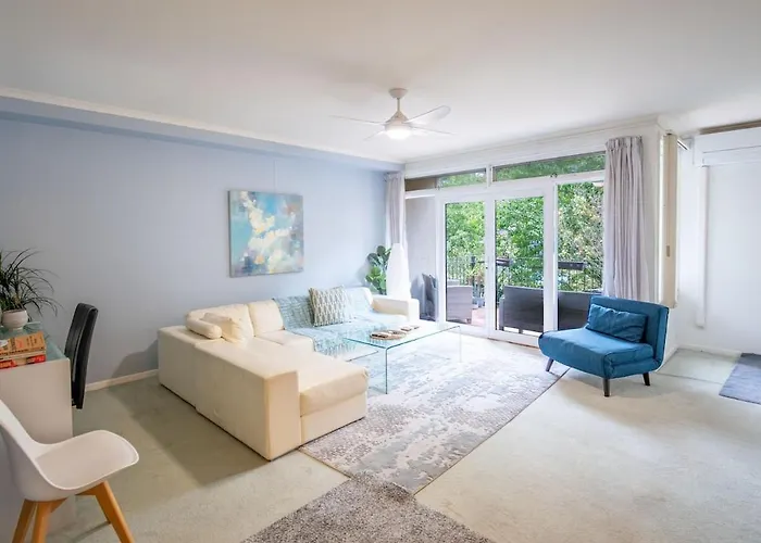 The 1-room Tranquil Oasis 2 Bdrm Pool Tennis Gym Melbourne apartment is situated around a 5-minute walk from the Malthouse Theatre and 20 km from Essendon Fields airport. This spacious apartment with a patio is located not far from the Eureka Skydeck.